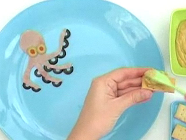 Рецепт блюда из моллюсков в маринаде.Состав:яйцо — 1 штука;моллюски в маринаде — 1 порция;оливки — 5 штук;маслины — 1 штука;крекер — 4 кусочка;плавленный сыр — 100 гр;ветчина — 1 кусочек.