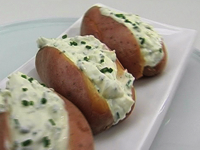 Обед вегетарианца.Состав:картофель — 3 штуки;сливочный сыр — сок одного лимона;чеснок — 1 зубчик;немного зеленого лука.