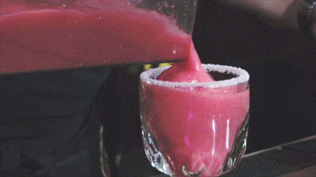Для любителей алкогольных клубничных коктейлей коктейль «Клубничный дайкири».Состав:клубника — 2 кг;вода — 125 мл;сахар — 100 гр;гранатовый сироп — 50 мл;ром, сок лайма и сахарный сироп.